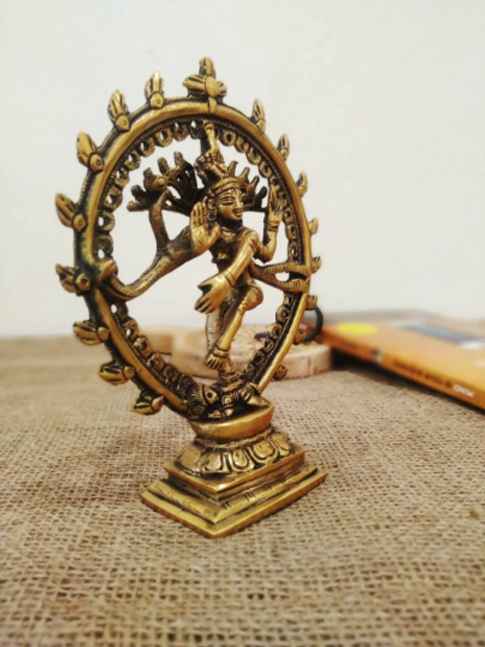 The Shaivya is a unique handcarved Nataraj table top decor in a vintage and antique finish. `This exquisite brass Natarajan or dancing Shiva would look fabulous in your home interiors and bring your interiors alive with an art deco and rustic feel.