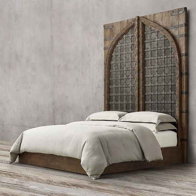 The Sumer is a solid wooden rustic bed headboard handcarved in a fortress door style design by skilled artisans. This beautiful art originates from centuries back which the mughal rulers brought to Indian from Persia. The exceptional art gives a vintage vibe with exquisite hand carvings done in rustic brown finish. This exquisite bed headboard would look fabulous in your home interiors and bring your interiors alive with the rustic and vintage feel. It is made using reclaimed wood which has natural wear and tear and cast iron strips and finished with antique inspired colour. It comes as a headboard only without the main bed. It needs to be attached on to the wall by a professional.