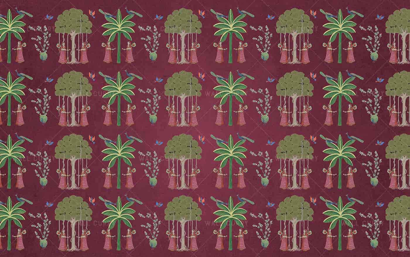 DownloadTraditional Pichwai- Trees Peacock Birds