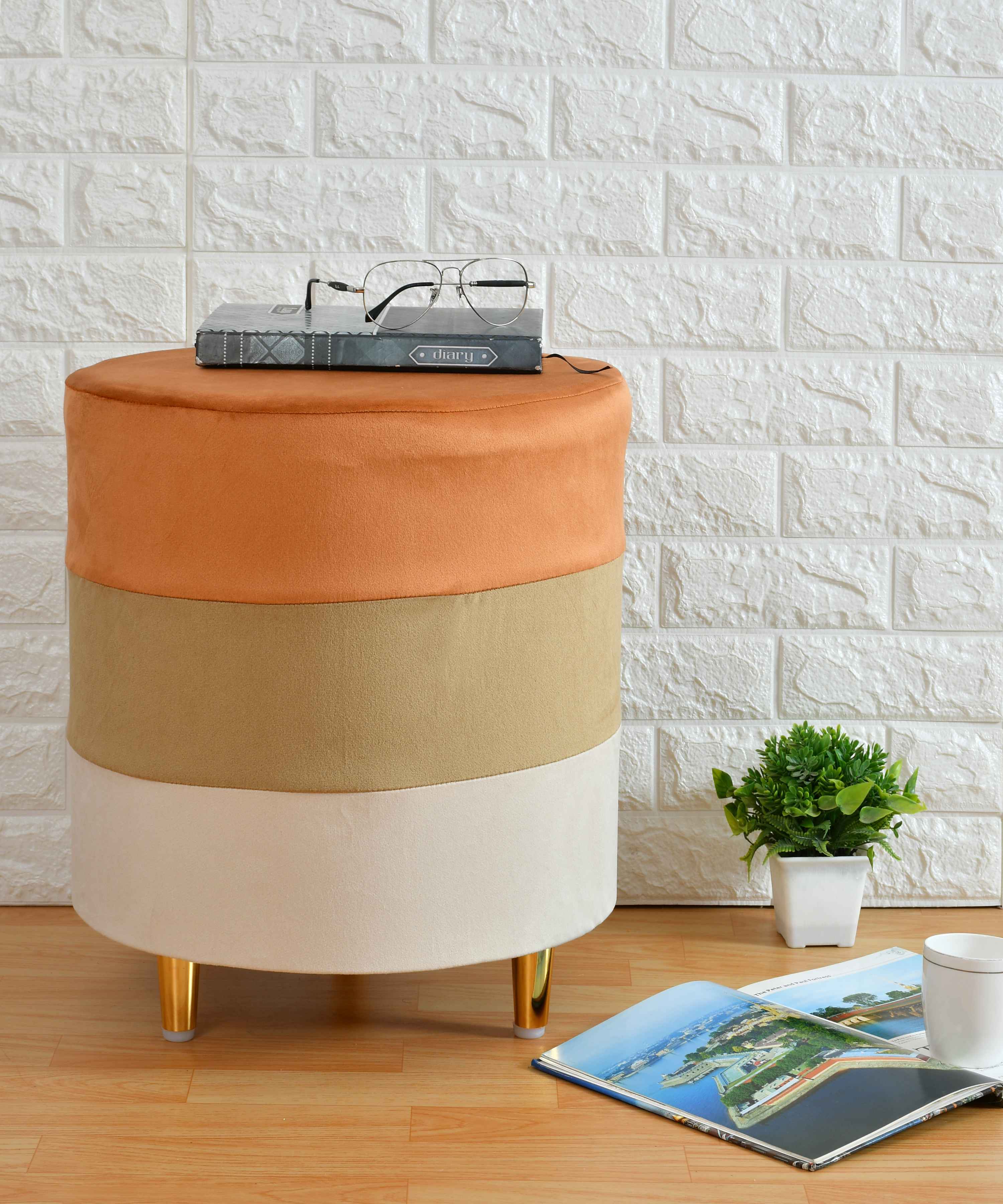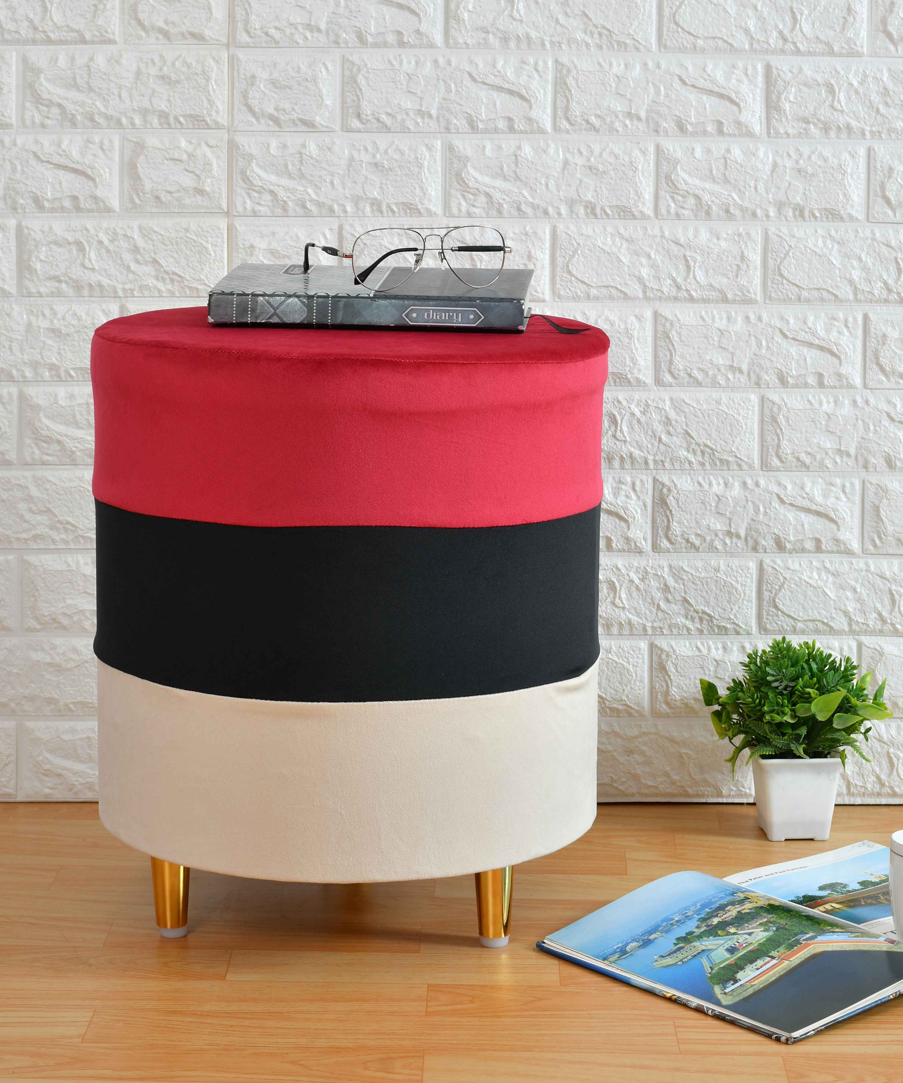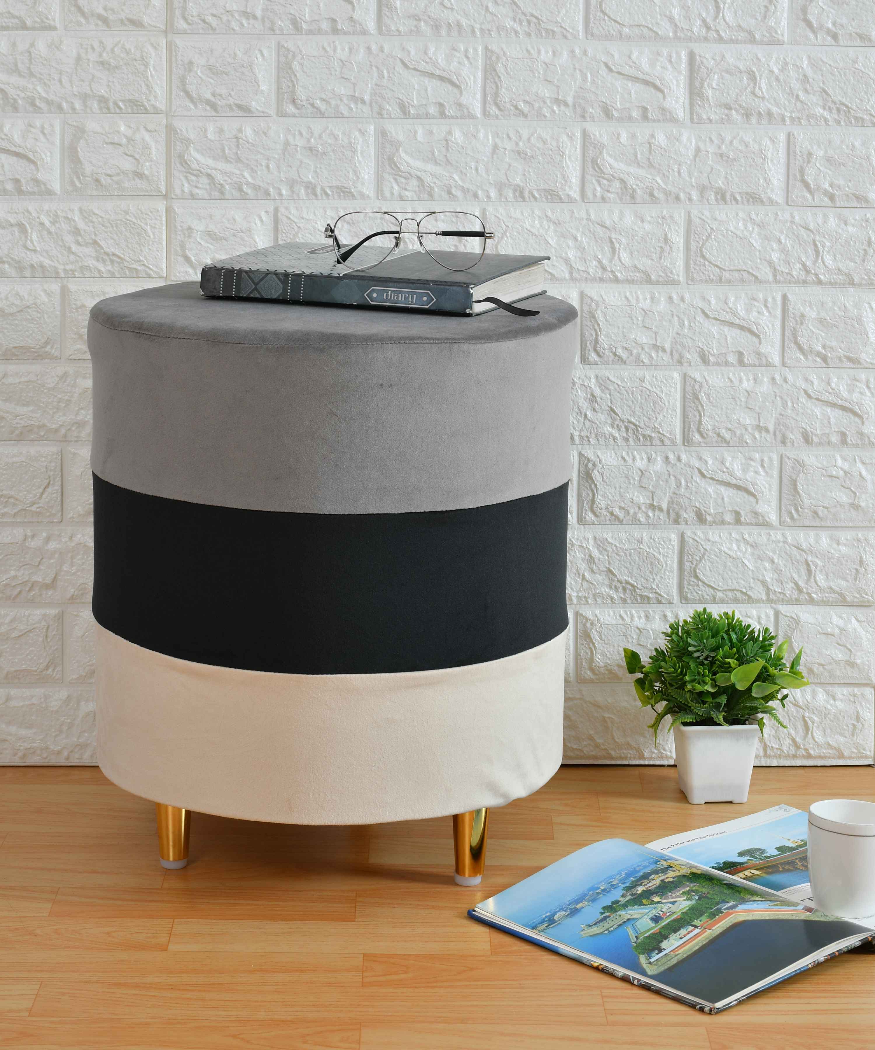 Introducing our Tricolor Mélange Pouf with Gold Legs, a stunning addition to any interior design scheme. This pouf boasts a unique design, with a tricolor mélange pattern that blends seamlessly with its gold legs to create a luxurious and visually striking piece. Crafted from high-quality materials, the pouf's top is made from a soft and durable fabric that is available in a range of beautiful color combinations. The mélange pattern adds a touch of texture and depth to the pouf's design, making it a perfect accent piece for any room in your home. The pouf's base is equally impressive, featuring four sturdy legs made from high-quality metal with a beautiful gold finish. The legs not only add a touch of opulence to the pouf's overall design, but also provide excellent stability, ensuring that the pouf is safe and secure for everyday use. This pouf is the perfect size for use as a footrest, extra seating, or as a decorative accent piece in your living room, bedroom, or any other space in your home. Its compact size also makes it easy to move from room to room, allowing you to enjoy its luxurious comfort wherever you go. In summary, our Tricolor Mélange Pouf with Gold Legs is a unique and stylish addition to any home. Its high-quality materials, stunning design, and practical size make it a versatile piece that can be used in a variety of ways. Whether you're looking for a comfortable footrest or a luxurious accent piece, this pouf is sure to impress."