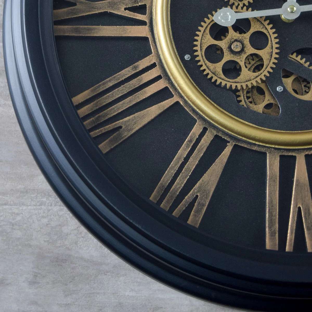 A statement time piece, our Etoile Noire wall clock comes with a beautiful black body and contrasting golden digits and mechanical parts. The beautiful exposed machinery of this clock lends this clock an industrial feel.