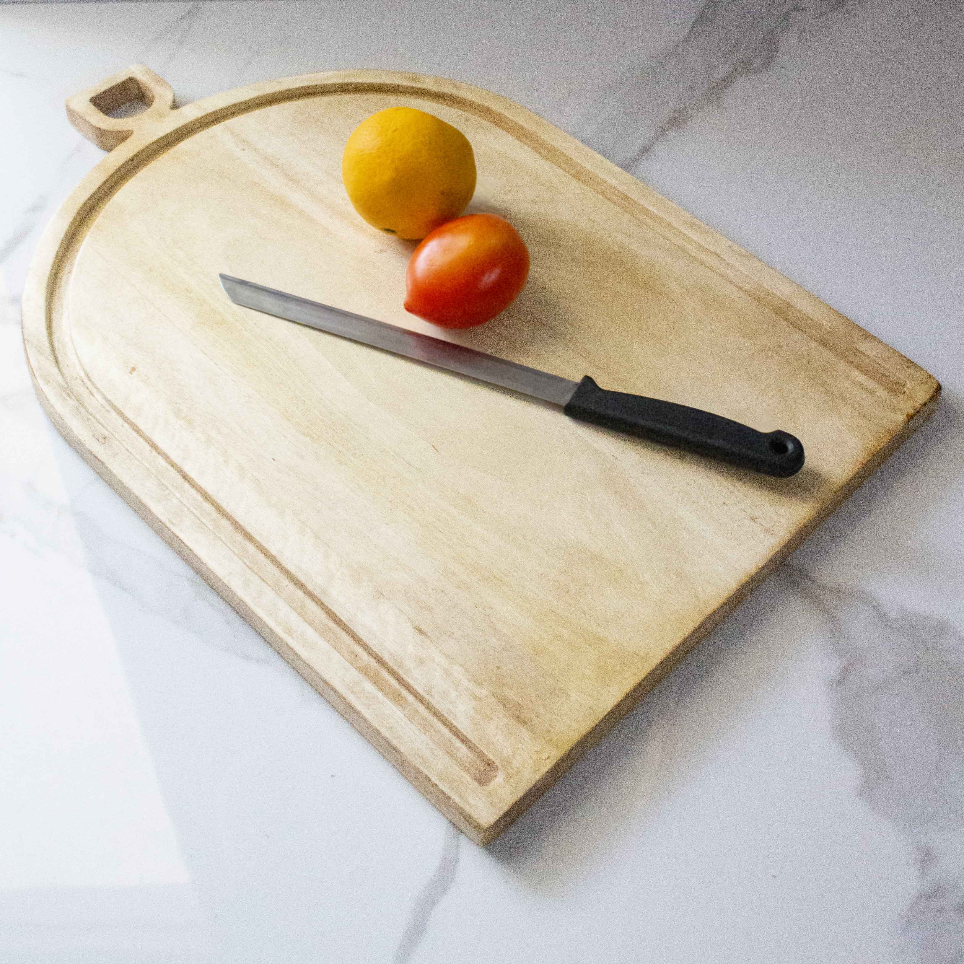 This beautiful Wooden Chopping Board features a juice trough to keep your tabletop clean. It’s made of mango wood and is light and simple to use, with bump-ons on the bottom to provide you a better grip while chopping. It’s a modern, versatile fruits and vegetables cutting and serving board. This lovely wooden Trough Chopping Board will brighten up your kitchen while also keeping it tidy.