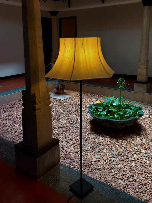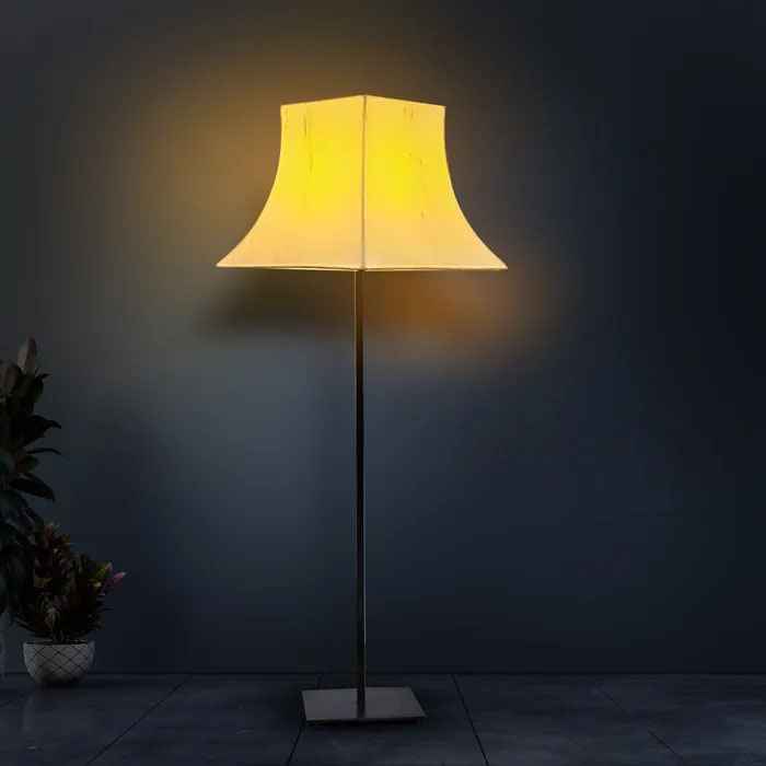 Shade Material: Natural Raw Silk Fabric Stand Material: High Gloss Powder Coated Iron Stand