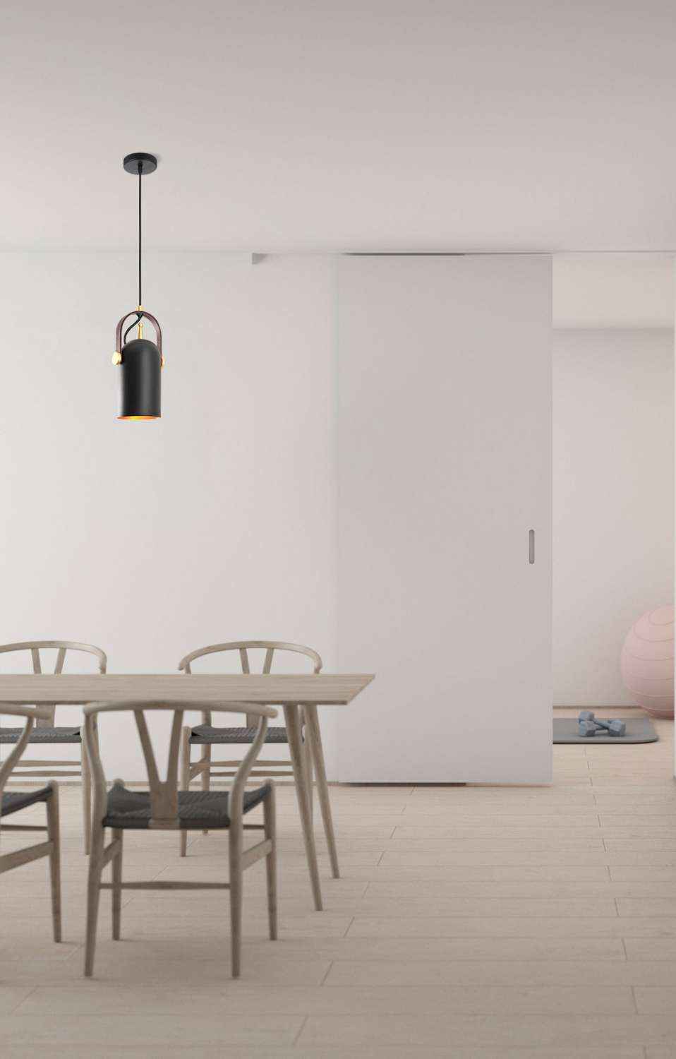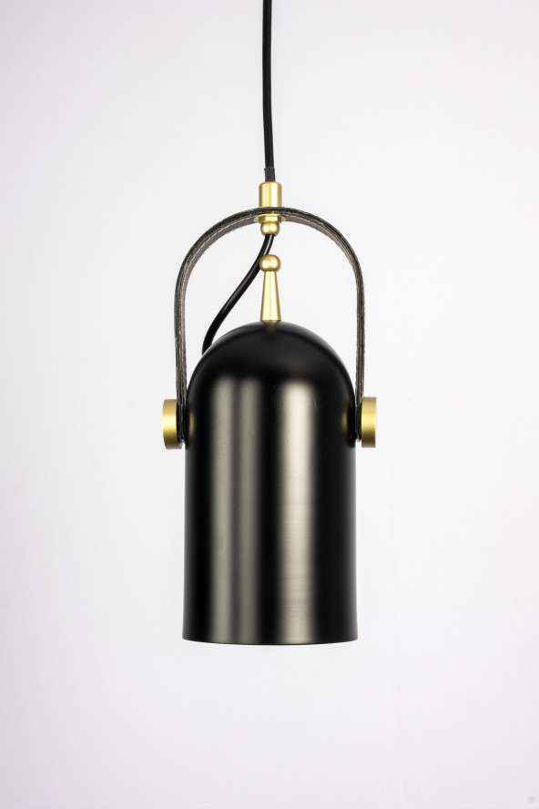 The mini pendant is a small antique fixture with a simple cylindrical design that comes in a matt black exterior with a reddish orange interior. It's a simple statement piece that accentuates existing architectural qualities and furniture pieces with elegance.