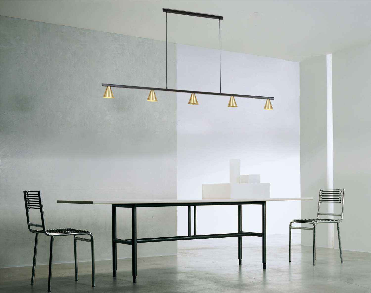 The LED pendant light features a simple and aesthetically streamlined silhouette. The energy efficient illumination creates a lit atmosphere with a modern flair. Comes in two sizes.