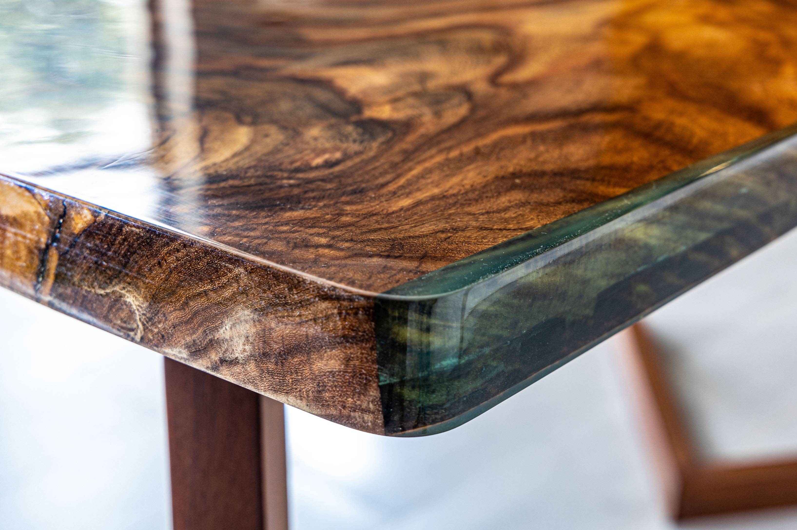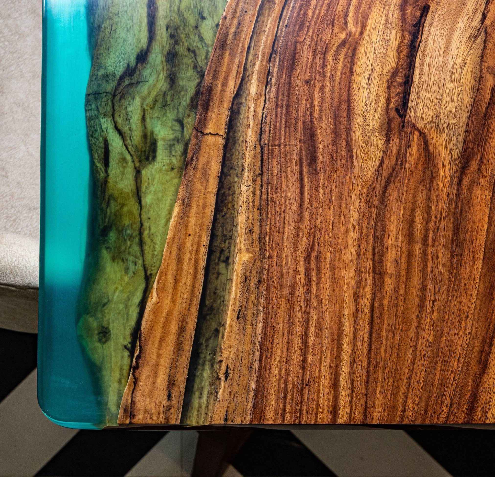 Inspired by the glistening turquoise waters, it translated into a compelling contemporary silhouette. Crafted by master woodworkers using solid Sheesham wood and epoxy resin, Verdona's minimalist aesthetic will inject naturalness and warmth into your dining room. The sculptural base adds to its pleasing rustic simplicity.