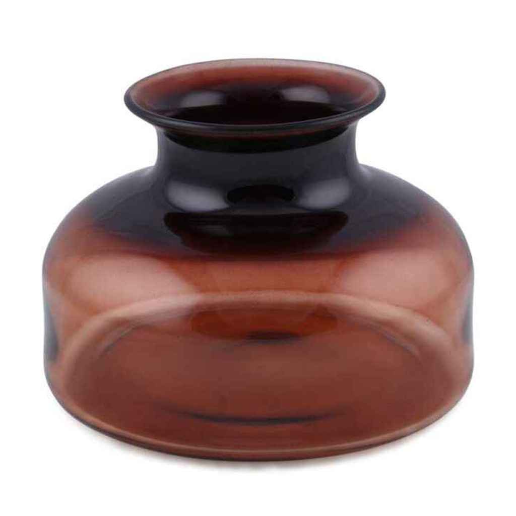 This is a beautiful amber vase. A nice addition to any collection of Vintage soda glass, designed Glassworks was pioneering in its use of ‘retro’ shapes. Designs from the 1950s and 60s combined traditional forms with glass-blowing techniques that resulted in trapped air bubbles. This Brown Vase is a minimalist yet eye-catching piece of décor that will pique the interest of any spectator. • Material – Mouth Blown Glass • Beautiful finish • Minimal, Vintage design • Colour – Brown • Intricately detailed by hand • Package Included – 1 Vase • Dimensions – height-12 inches Length-9 inches • SKU – AMID-BGBVL01 • Care Instructions – Wipe clean with a slightly damp cloth • There may be small bubbles or color variations that are characteristic of the handcrafting process and contribute to their beauty