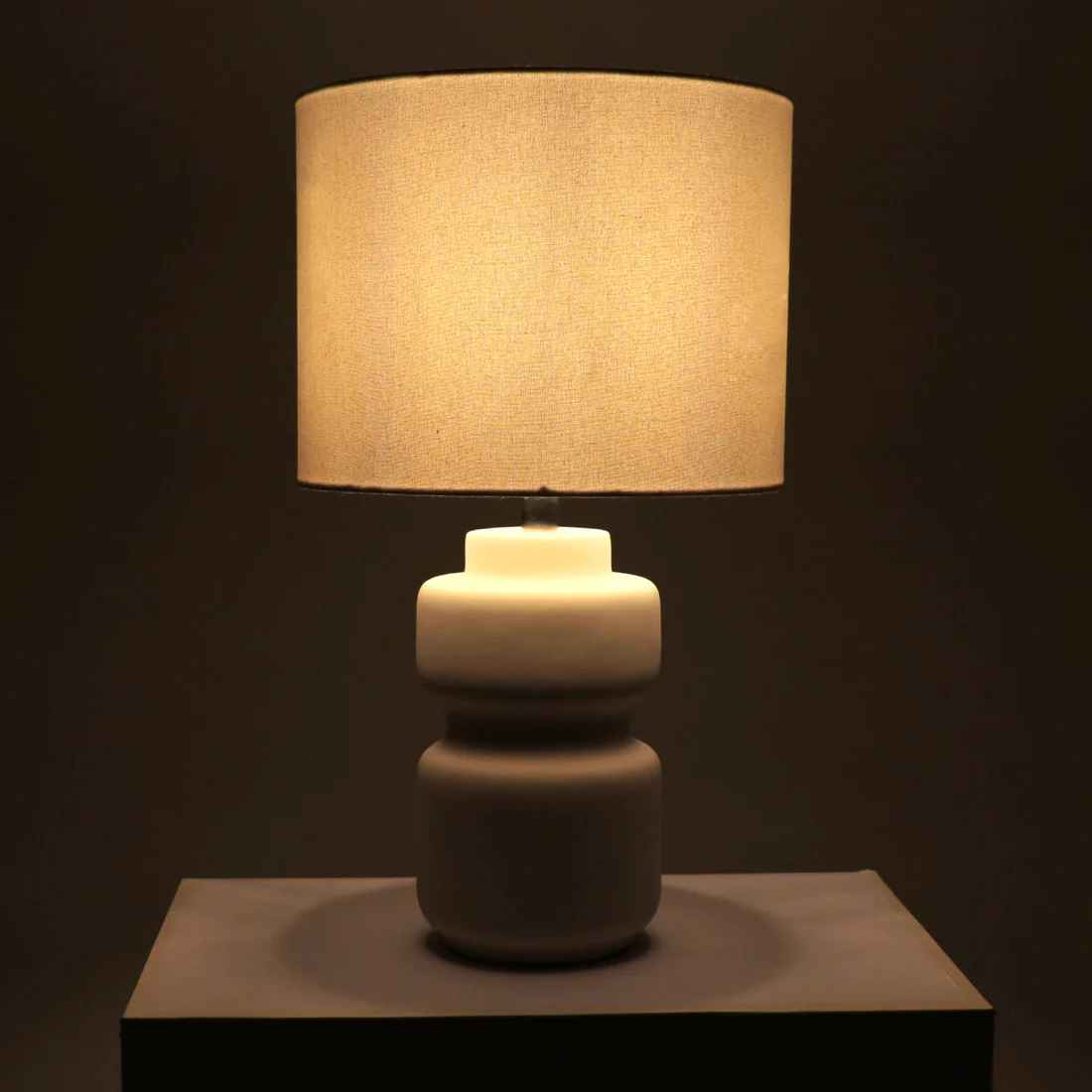 This table lamp lends a lovely modish flair to your existing home decor favourites. It is crafted with a curved ceramic base and linen shade lending a soft glow to interiors. Place it atop an accent table or nightstand to bring a contemporary charm to the space.