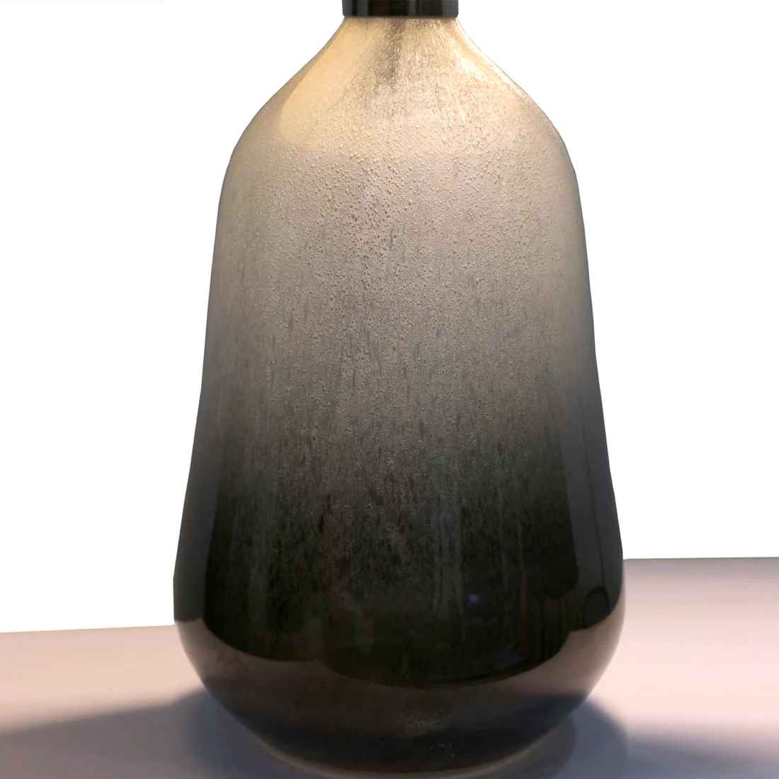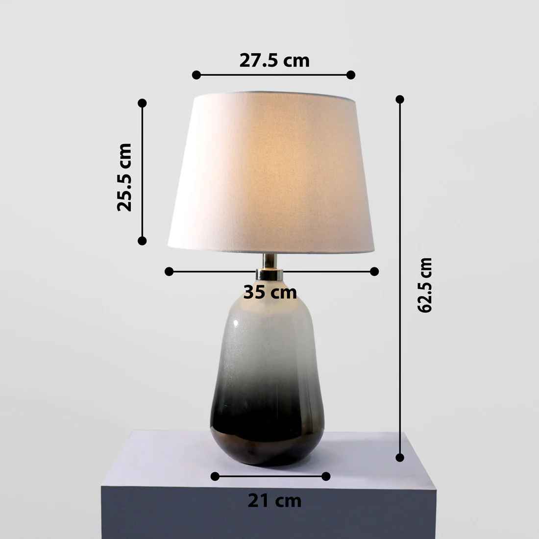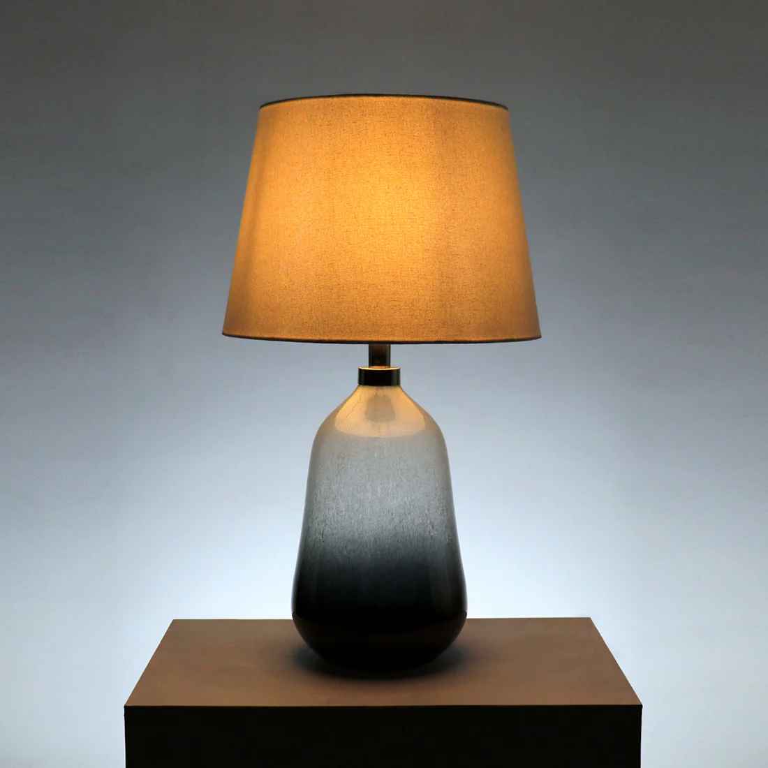 Like the gathering of storm clouds, WALZE lamp brings mystery and moxie. The large-scale sleek formation of the glass base is first mouth-blown and then finished in a smoke luster ombre to create its dark and moody features, which are lifted when illuminated. Topped with a flared white linen shade makes a warm appearance in any decor. This lamp is combination of dark moxie and warmth.