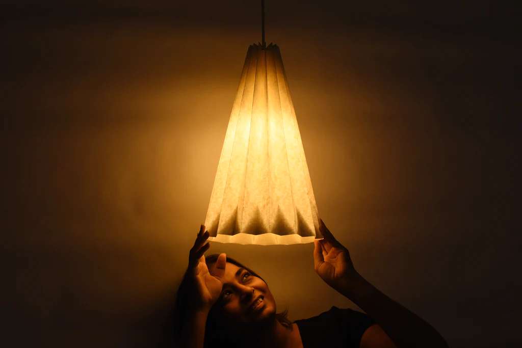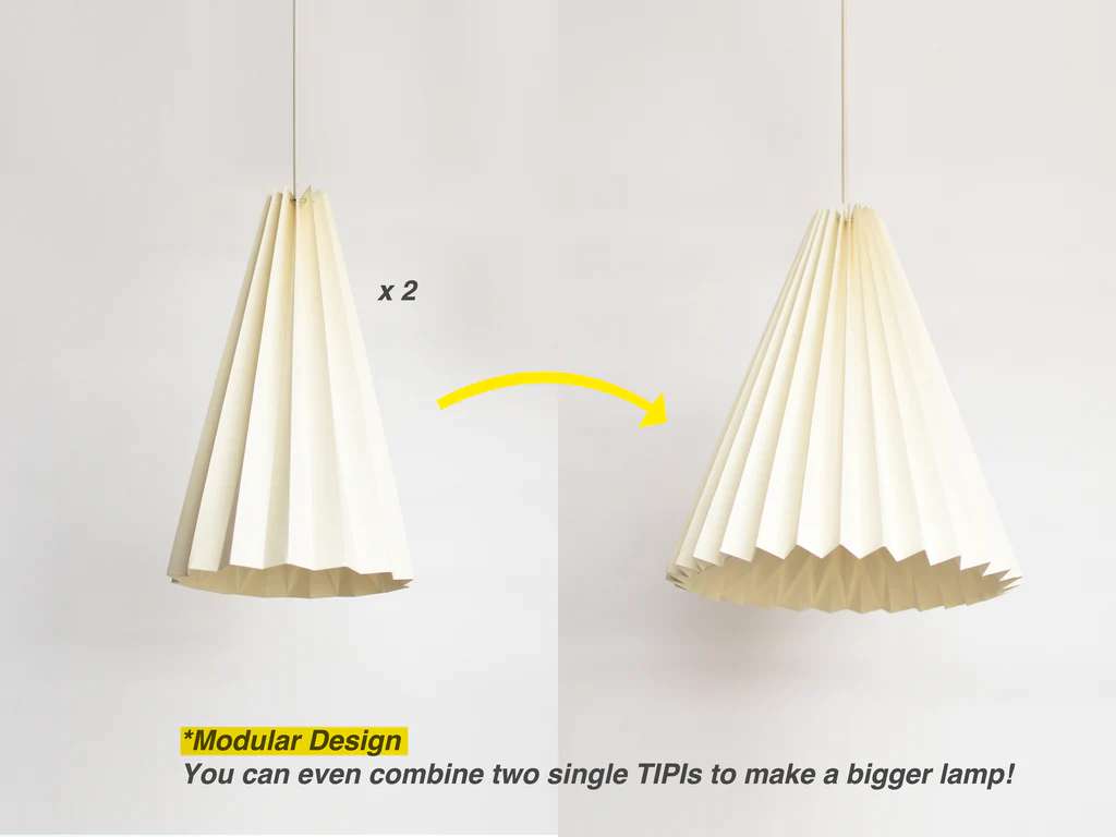 Design Inspired from "TIPI, a cone-shaped tent. They were made by Native Americans of the Great Plains who frequently moved from place to place.”Our origami lamps have been put together using the finest quality of paper. Each piece has been prepared with great care and exceptional craftsmanship to cater to your aesthetic needs for home decor.“All our products are handcrafted with utmost workmanship. The attention to detail and artistic brilliance that our Home-trained team of Differently-Abled people brings to the table makes our products special and unique.” Colour: White Package content: 1 Flat Packed Paper Origami Lamp Shade. (*Bulb and holder is not included) Modular design: Combine two lamps together to make a larger lampshade. Easy snap assembly. Quick & Easy Installation (All you need is a hanging light Bulb). Compatible with "LED" Light Bulb. A 12watt-3000k LED bulb is used for the setup in our listed images.