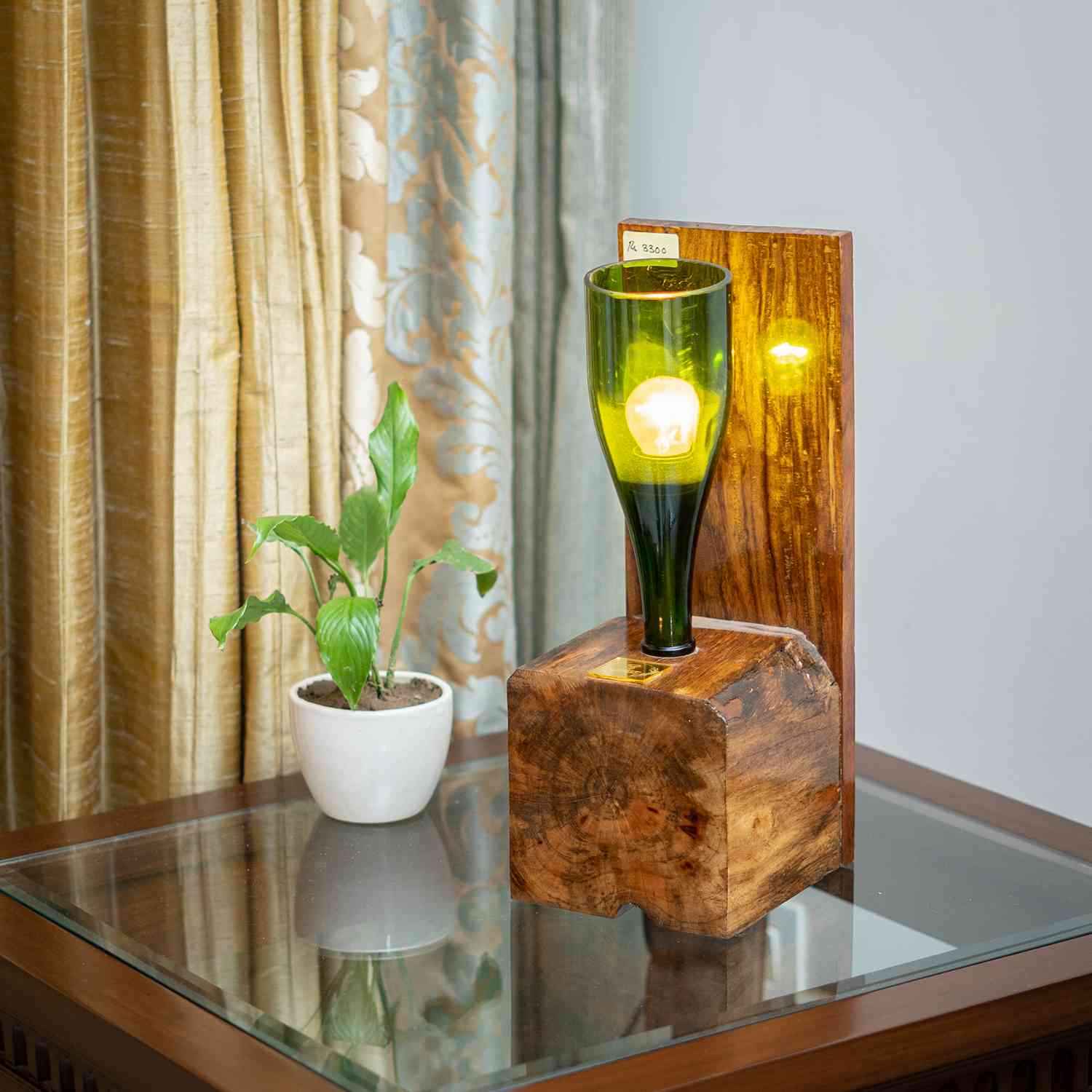 Satiating your craving for a modern focal point in your homes, this one-of-a-kind piece features an eye-catching base and an innovative design created by upcycled bottles, converting it into an elemental addition to your home. The handcrafted details are produced by a skilled artist that conveys elegance to your unique space