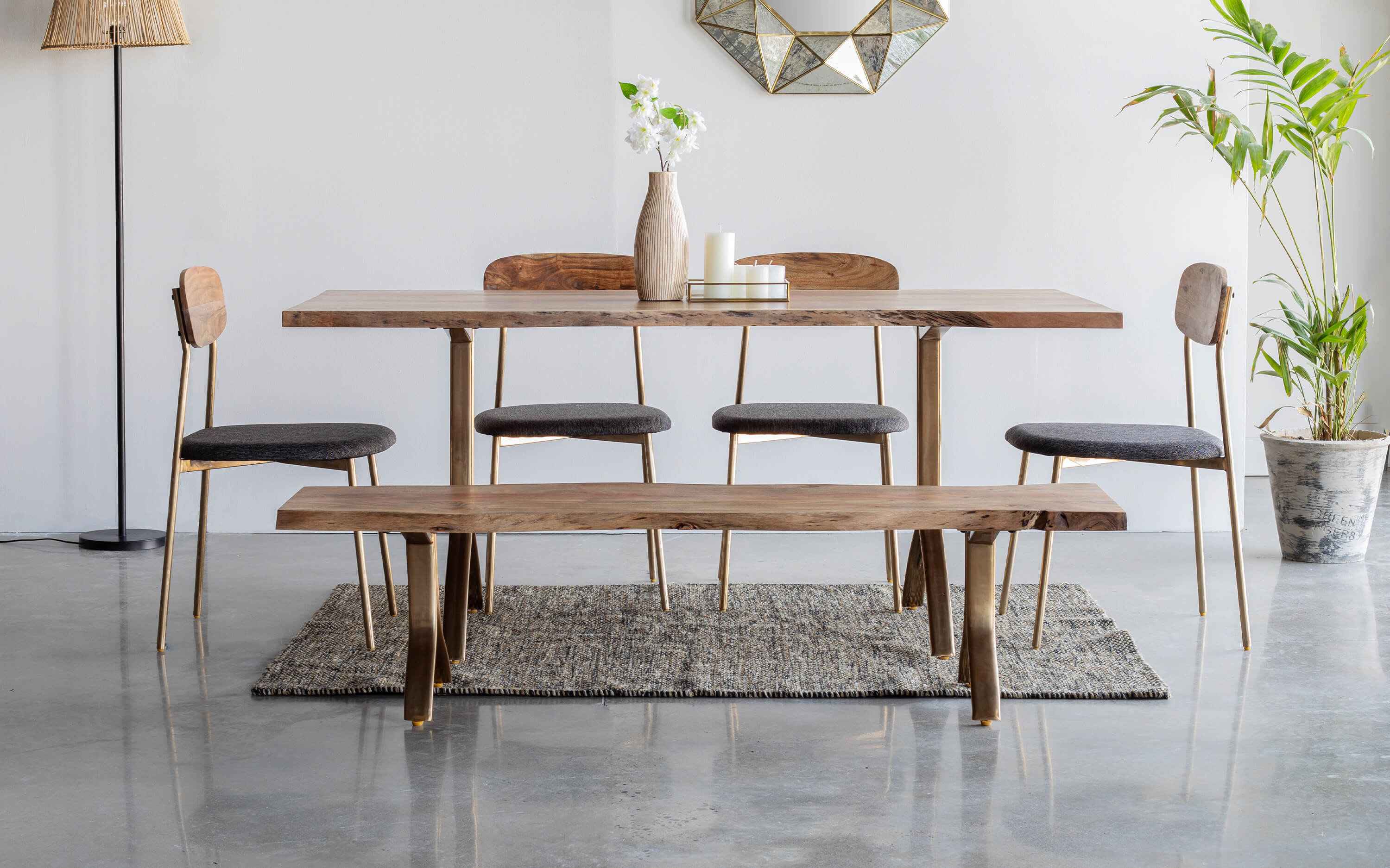 45 L x 50.8 W x 85 H cm Chair, 180 L x 90 W x 76 H cm Dining, 165 L x 40 W x 45 H cm Bench