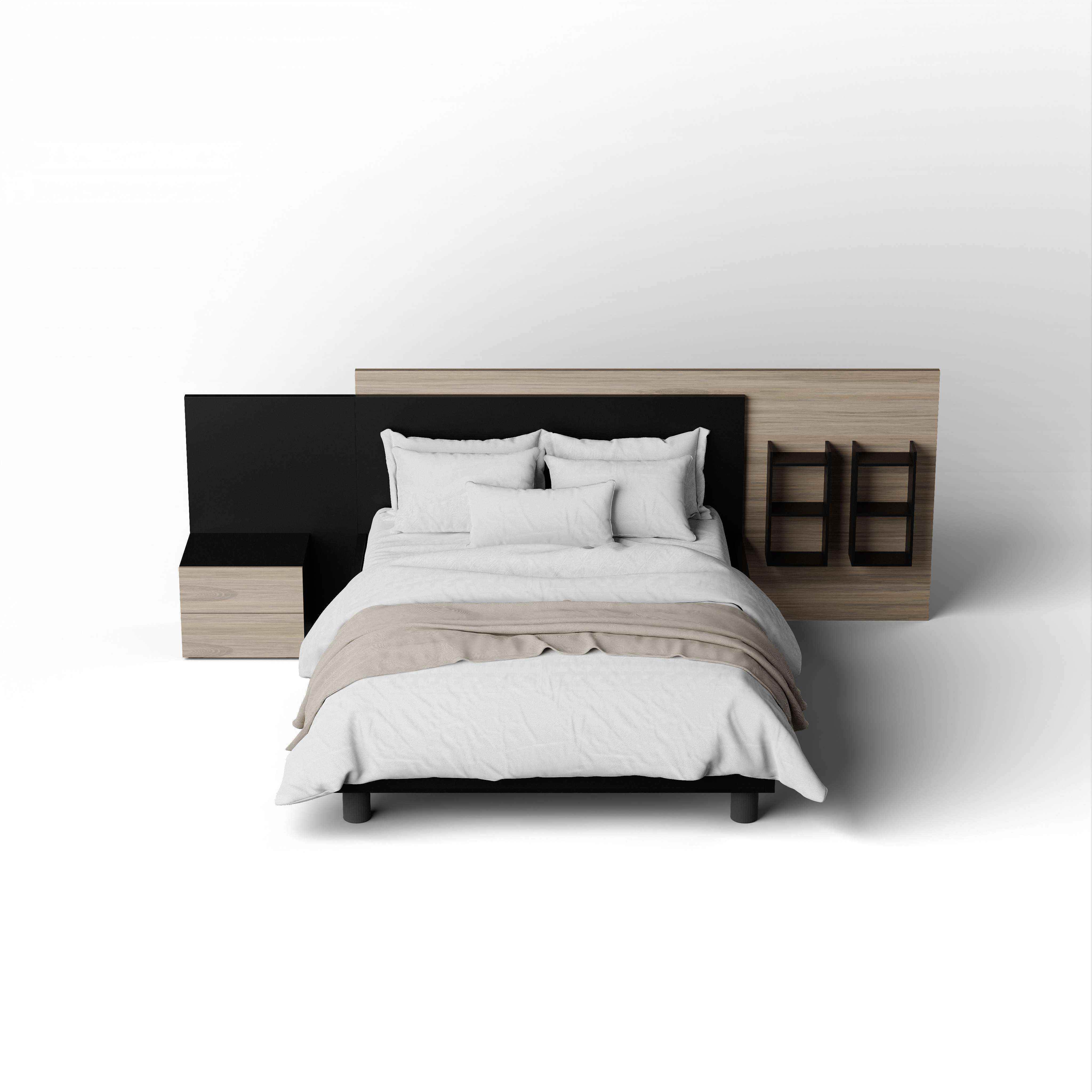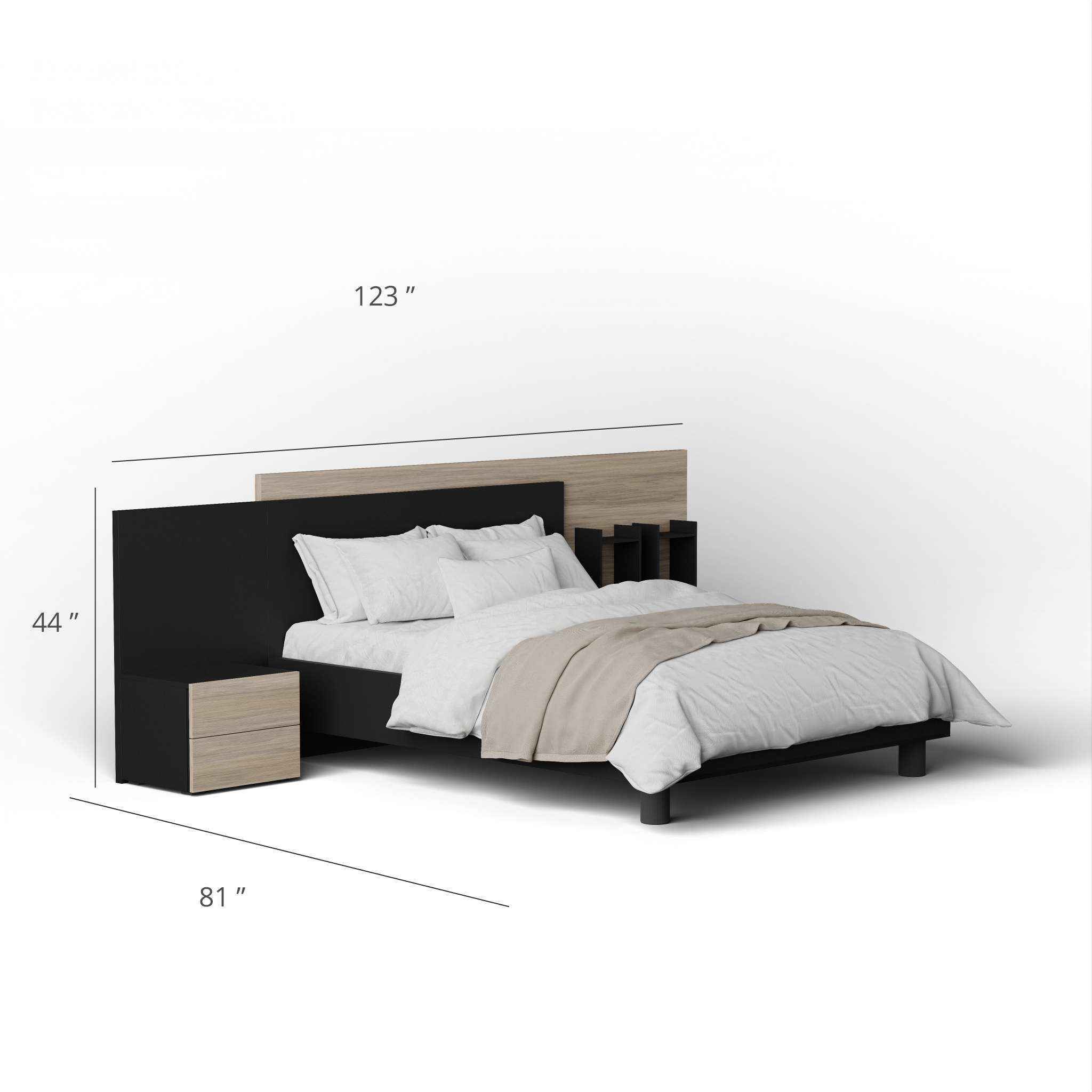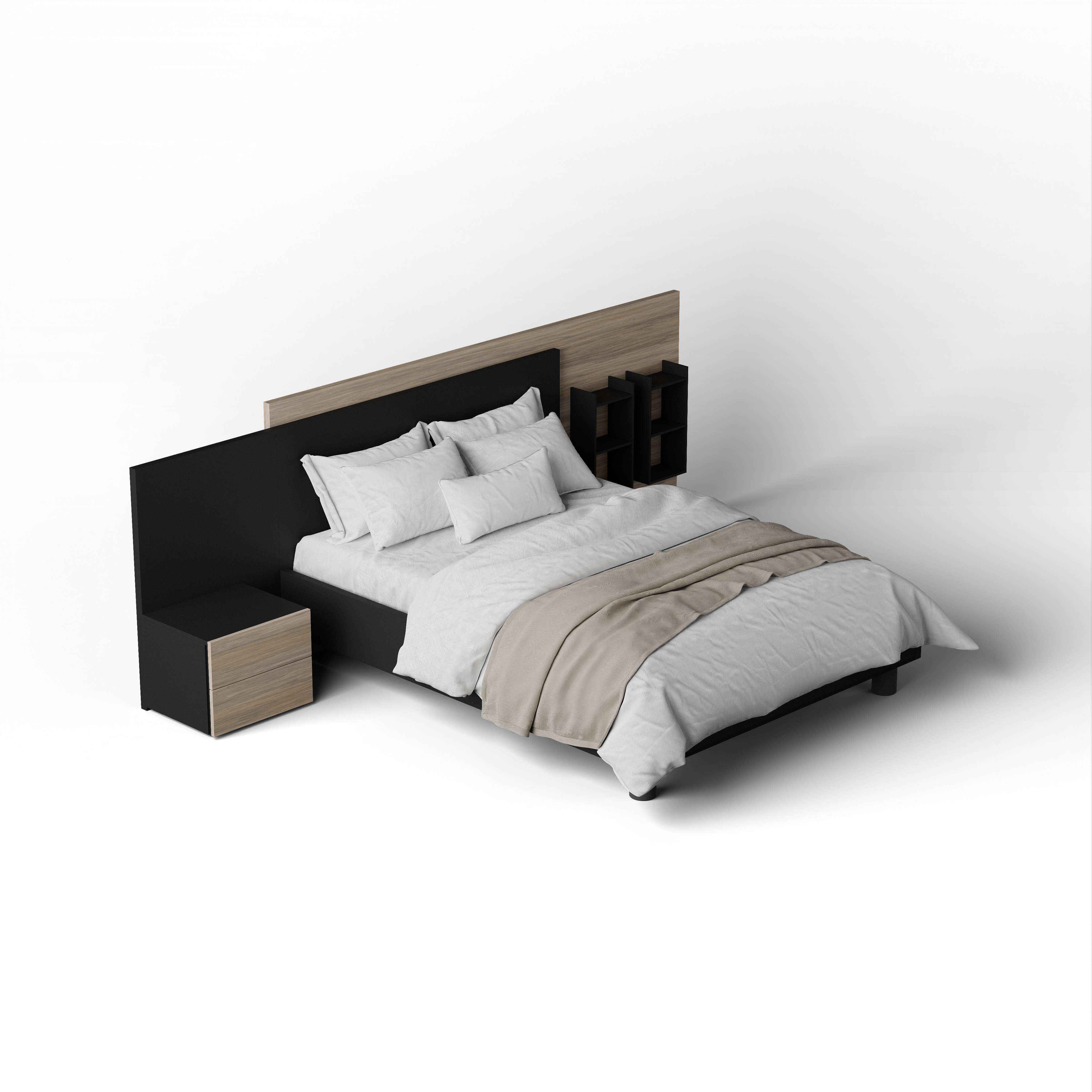 Black Post-Laminated Plywood Headboard; Champagne Walnut Pre-Laminated Plywood Headboard Slat; Black Post-Laminated Plywood Carcass; Champagne Walnut Pre-Laminated Plywood Accessories; Champagne Walnut Pre-Laminated Plywood Accessories