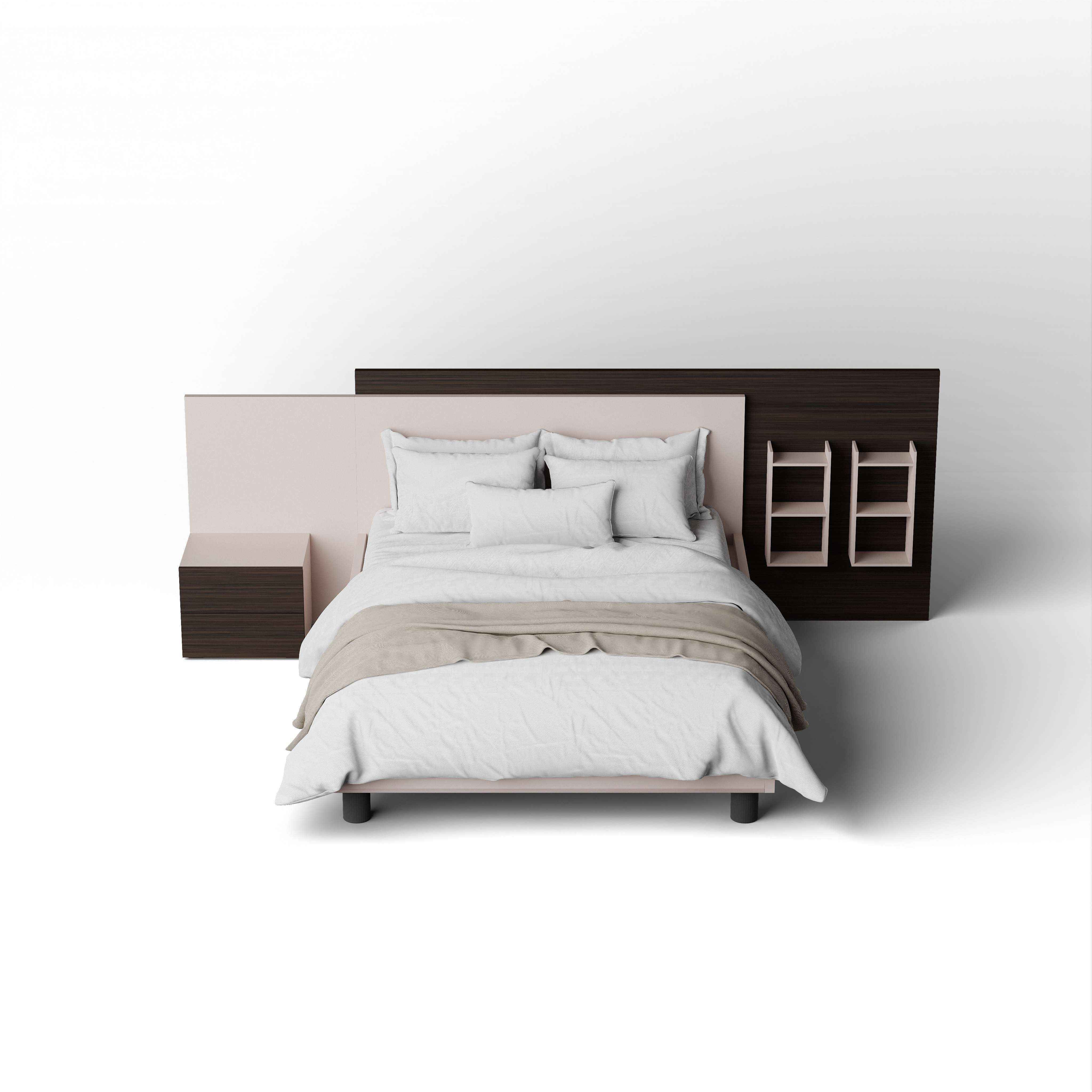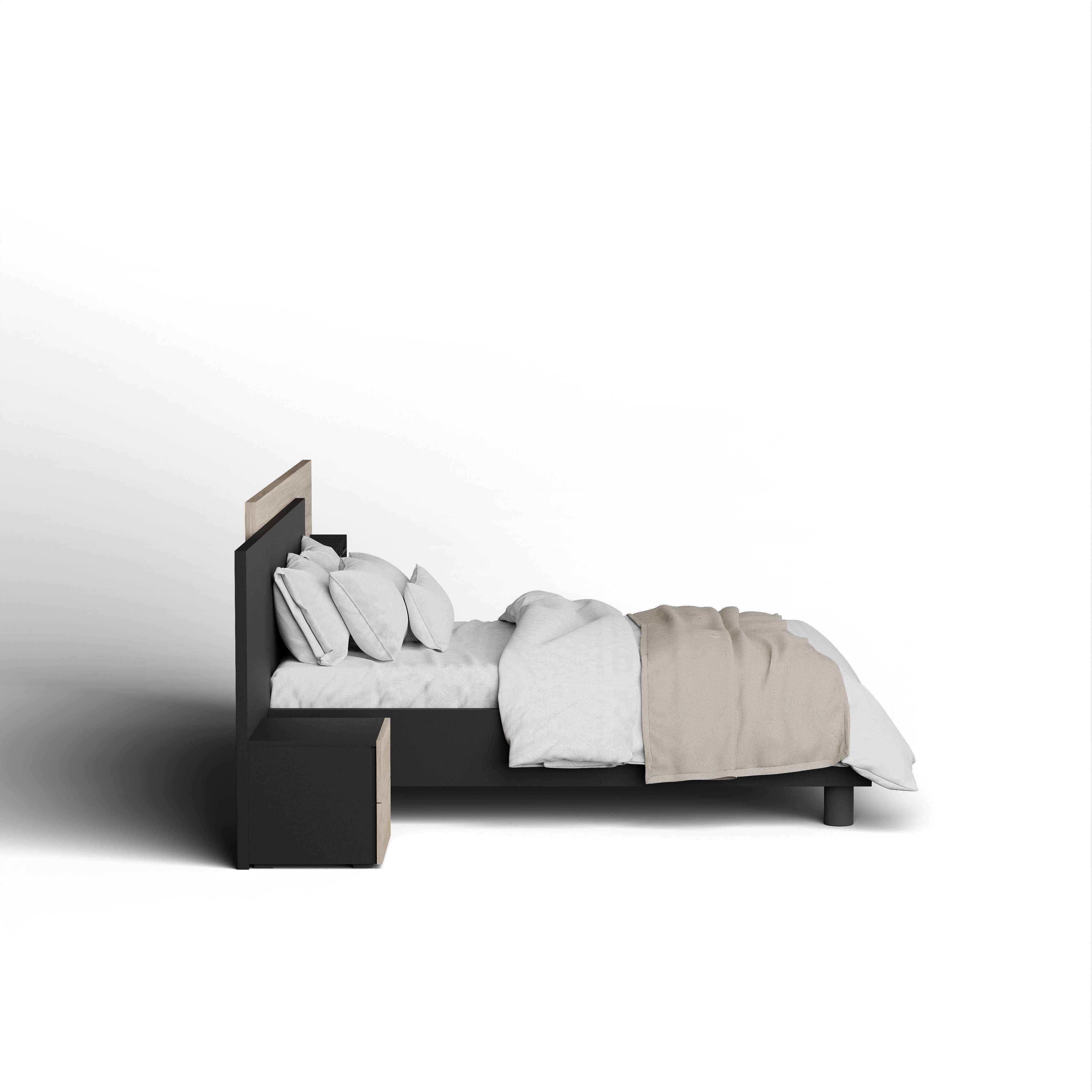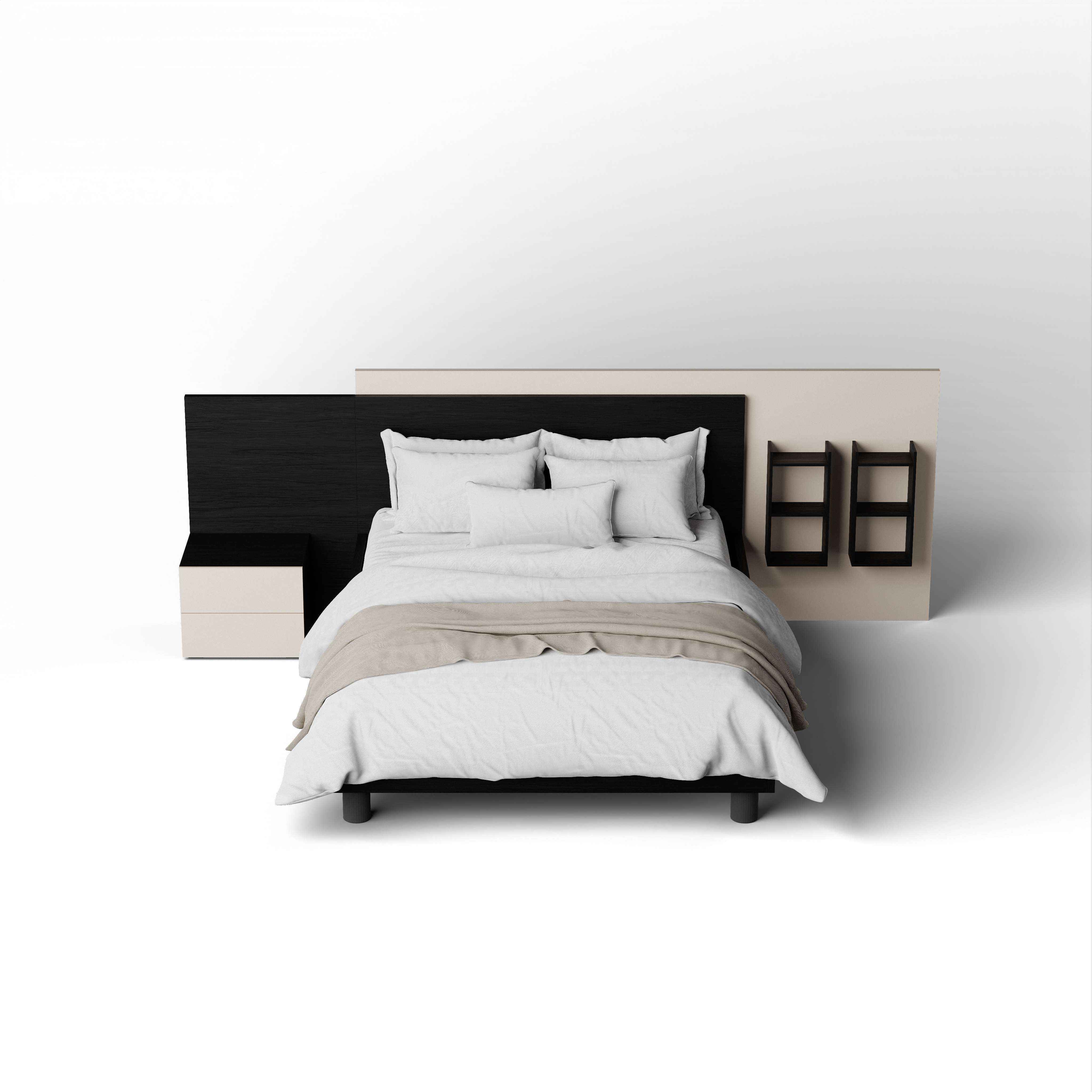 Black Post-Laminated Plywood Headboard; Champagne Walnut Pre-Laminated Plywood Headboard Slat; Black Post-Laminated Plywood Carcass; Champagne Walnut Pre-Laminated Plywood Accessories; Champagne Walnut Pre-Laminated Plywood Accessories